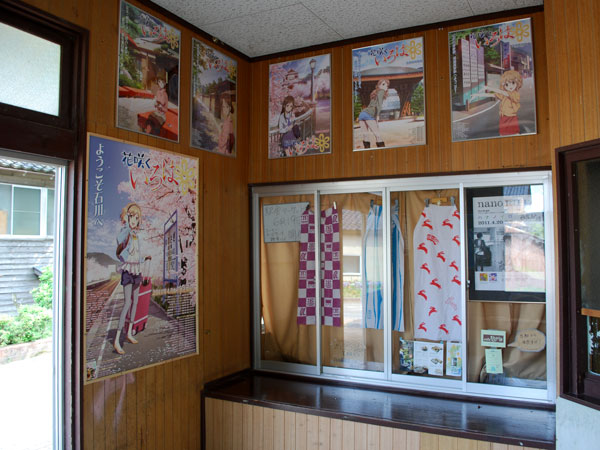 無人駅ですが、駅舎の中には全「花咲くいろは」のポスターがぎっしり!