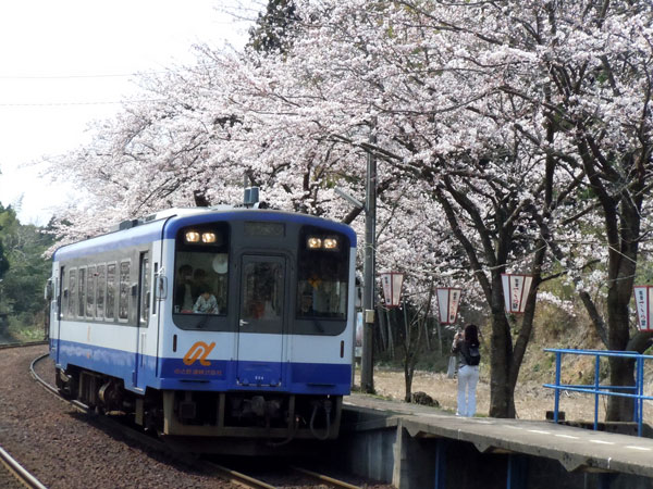 写真は次の駅、能登鹿島駅。桜のトンネルが人気で「さくら駅」とも呼ばれています!