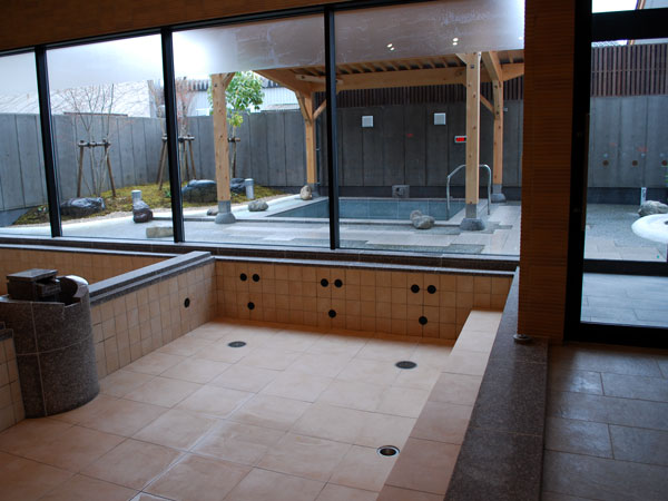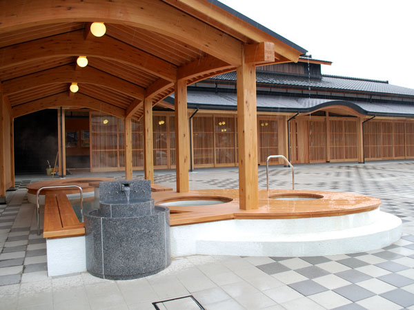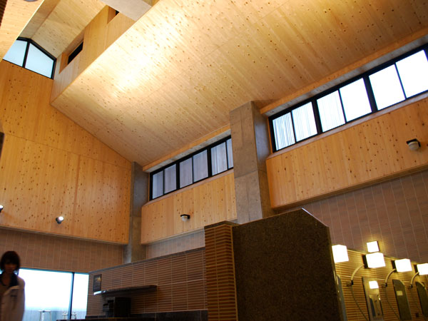 正面左の足湯はリニューアル前よりかなり広々して入りやすそうです。またエントランスは金沢の21世紀美術館のような(入浴なさらない方でも)人々が集える、とてもいい雰囲気です。