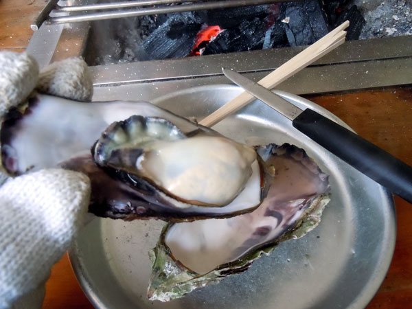 炭火で焼く、焼き牡蠣は絶品!(炭火は体も温まります)表面が白くなったら食べごろで、