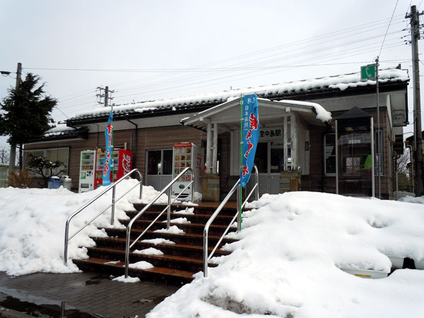 中島駅は無人駅ではないようなのですが、「休ます」の張り紙が・・・