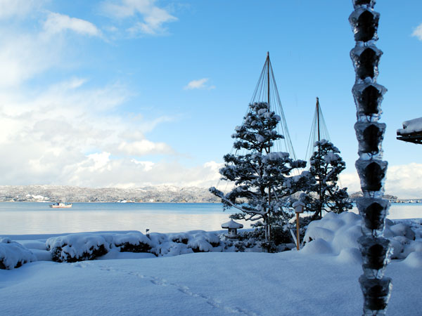 本日1月31日(月)ニュース等でも報じられておりますように北陸地方は大雪になっております。福井~金沢がかなりの積雪が大変なようで、該当地区の皆様には心よりお見舞い申し上げます。さて、和倉温泉周辺は青空も見え意外といい天気で写真のような美しい雪景色をご覧になるチャンスとなっております(^_-)-☆(写真は本日の美湾荘からの景色です)。しかもJRの運休でキャンセルが相次ぎましたので、ありえない価格で!人気の海の見えるお部屋に泊まれるプランご用意しております。今日明日だけのラッキーDAYですこの機会に是非どうぞ。
