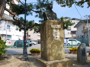 さて、この公園に昔から写真の銅像が建っておりますが、この方は当美湾荘の5代当主「多田喜二郎」でございまして、初代和倉温泉合資会社社長として、また和倉村長として、和倉温泉に大きく貢献したということで、街の人々が建ててくださいました。銅像に書かれている「一如信水」という言葉は温泉に身を捧げた喜二郎さんの信念を表しているようです。