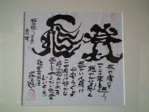 昨日お泊り頂きました常連のお客様、能登半島の景観や人情をとても気に入って頂いて若い頃から100回以上!!能登へお越し頂いております。いつもご宿泊後に写真を添えて素敵なメールを送ってくださるこのお客様ですが、書道の師範をなさっておりまして、直筆の書額を頂戴いたしました。筆ではなく石を使って描かれる文字はアーティスティックでもあり、同時に能登への想いも伝わる温かい感じがします。