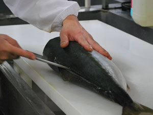 一昨年にCM等で「ぶりしゃぶ」が取り上げられ、すっかり冬の定番となった感のある鰤ですが、出世魚としても有名で、北陸では「こぞくら→ふくらぎ→がんど→ぶり」と呼び方が変わっていきます。写真は「がんど」ですが、寒くなってきますと身も締まっていっそう美味に!